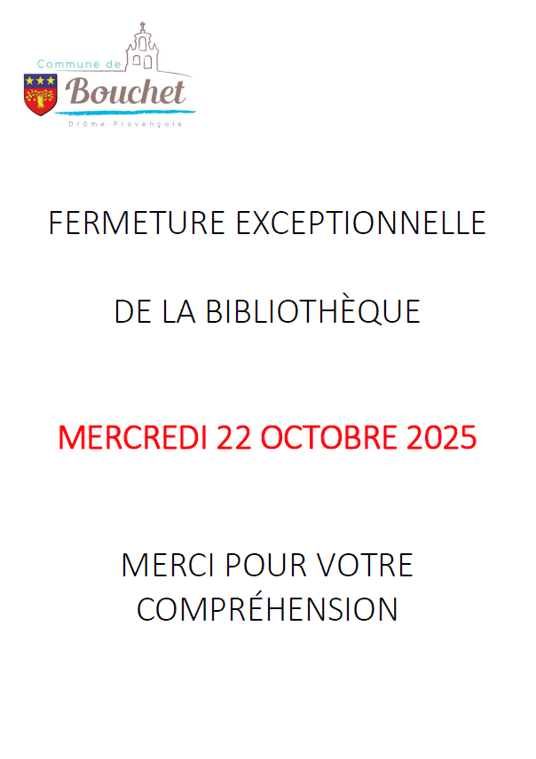 Fermeture exceptionnelle de la Bibliothèque le 22 octobre 2025 ← Marché hebdomadaire – Pause hivernale