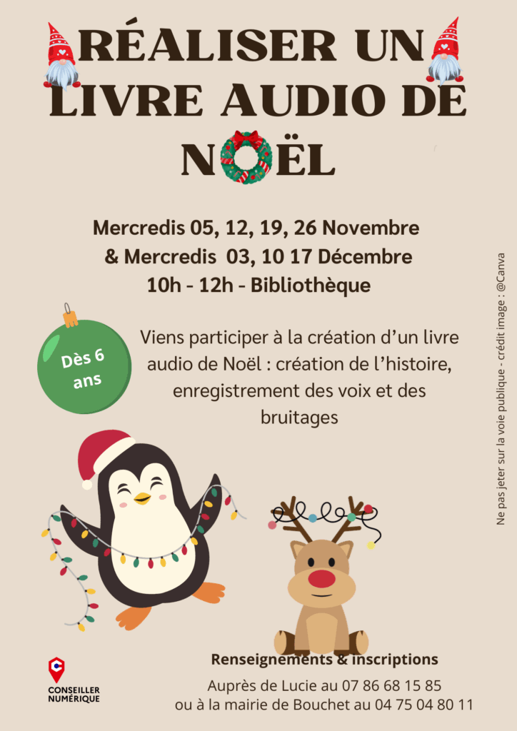 ATELIER NUMERIQUE RÉALISER UN LIVRE AUDIO DE NOËL 10h00 - 12h00 → Marché de Noël – Dimanche 7 décembre – Salle de l’Abbaye de 09h00 à 18h00 – organisé par le Sou des Écoles